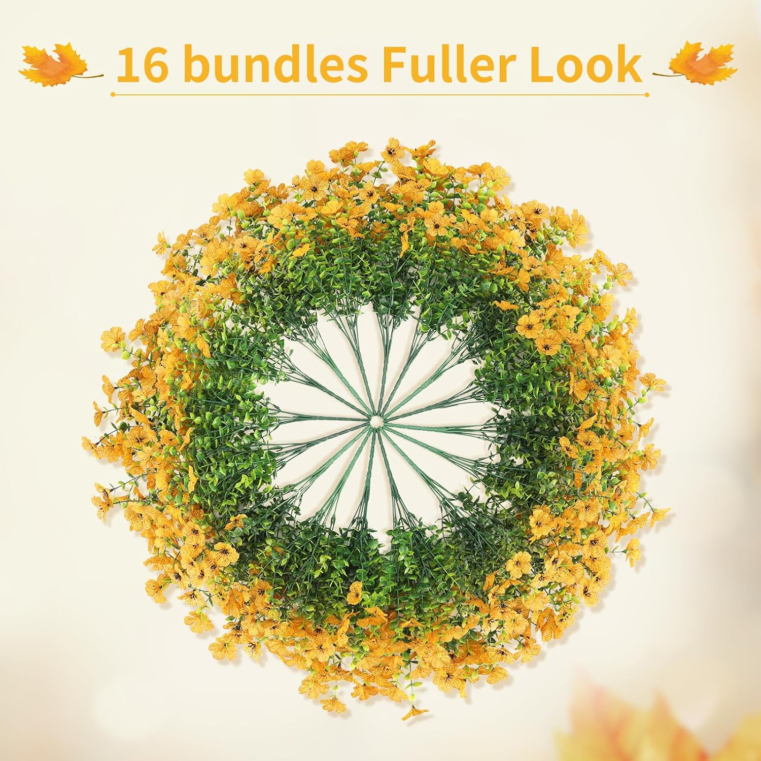 16 Bundles Artificial Mums Fall Flowers for Outdoors