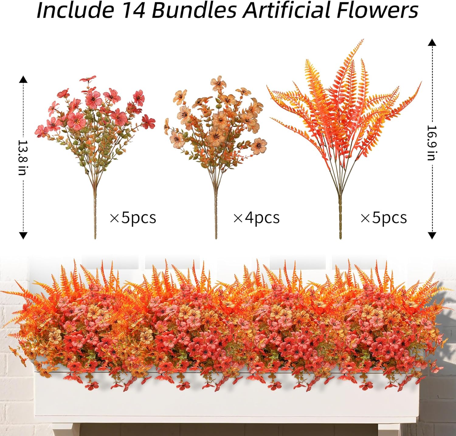 Artificial Fall Flowers Fake Mums Plants for Outdoors Decoration-14 Bundles