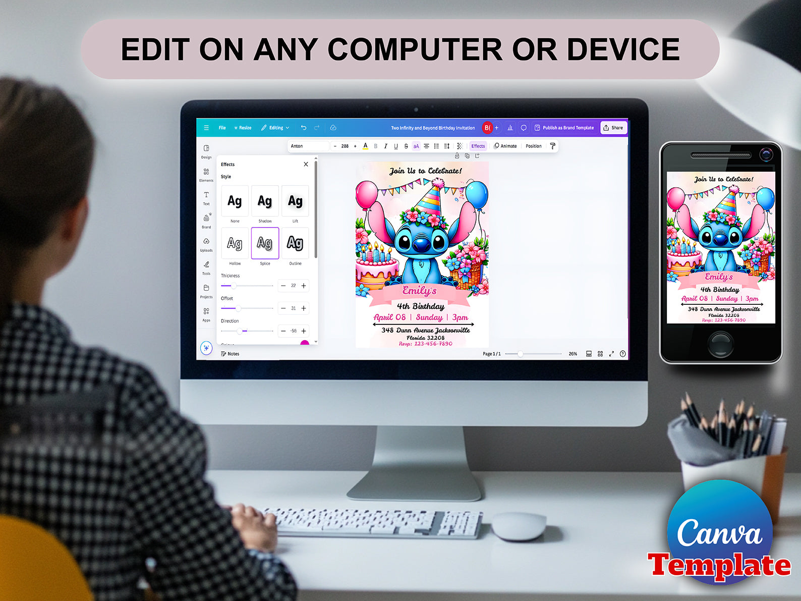 Stitch Birthday Invitation Editable Template