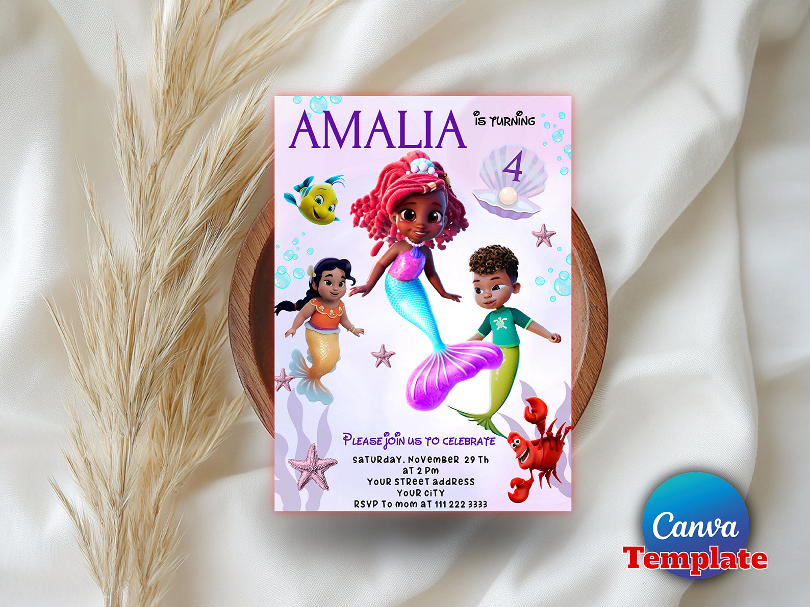 Editable The Little Mermaid Birthday Party Invitation