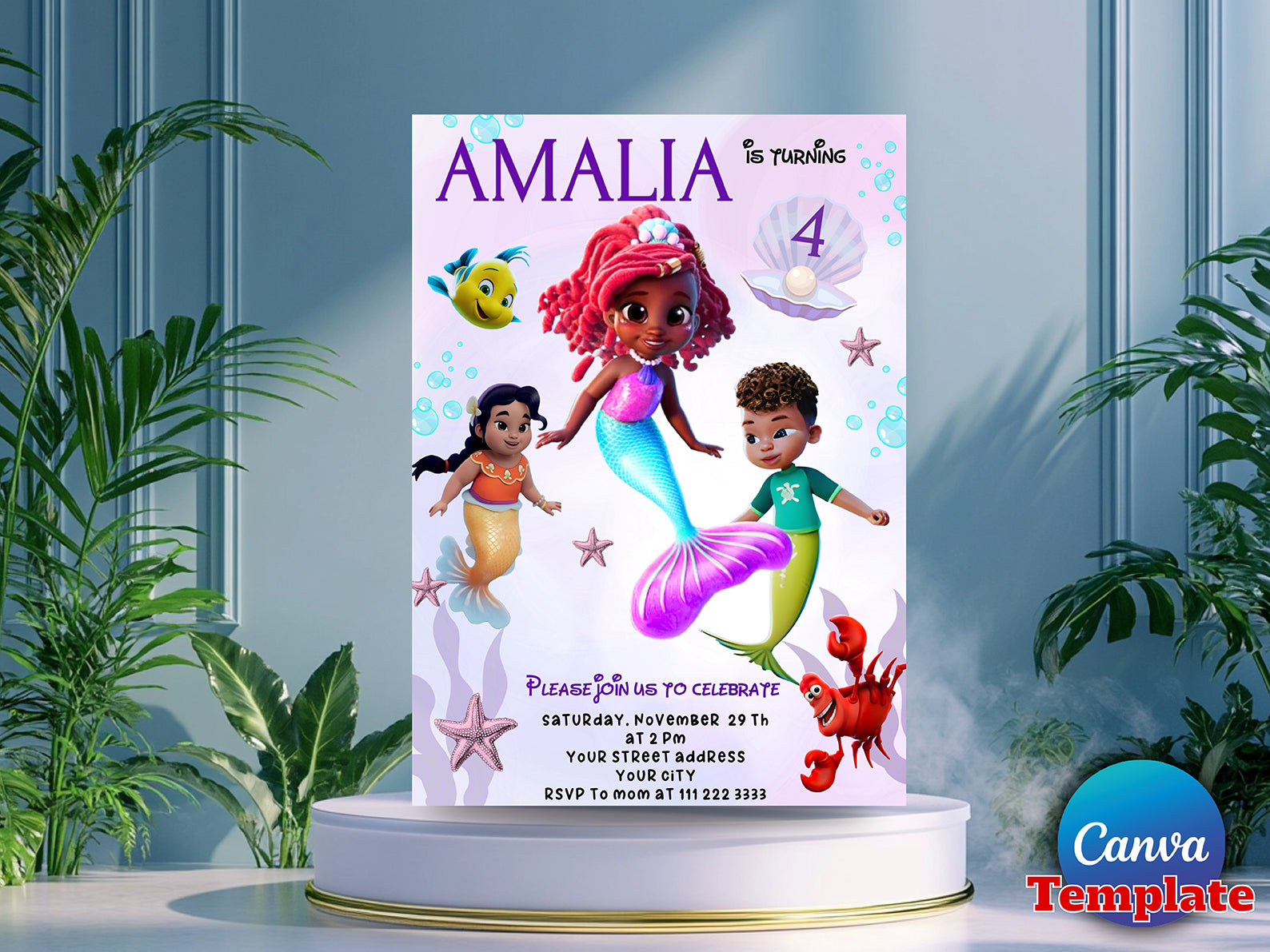 Editable The Little Mermaid Birthday Party Invitation (Printable)