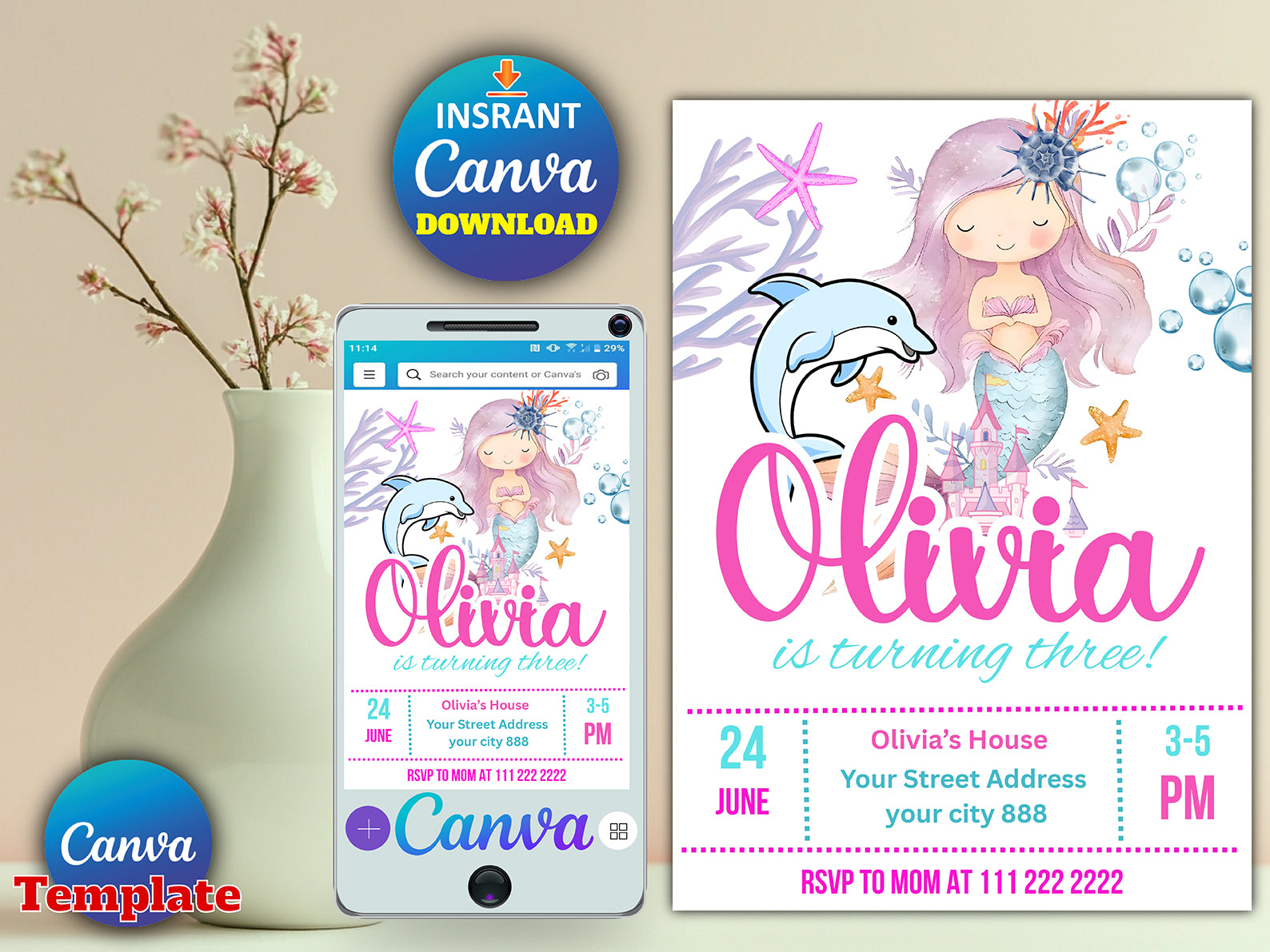 Mermaid Bash Under the Sea Birthday Invite(Printable)