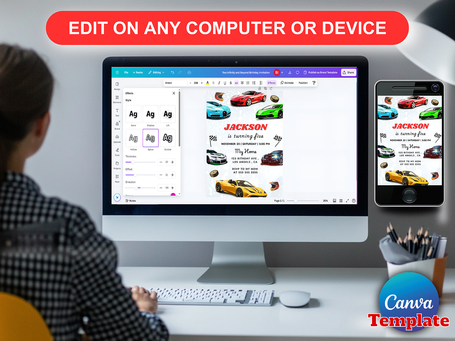 Customize in Canva. Log in or create a free account. No additional software required.