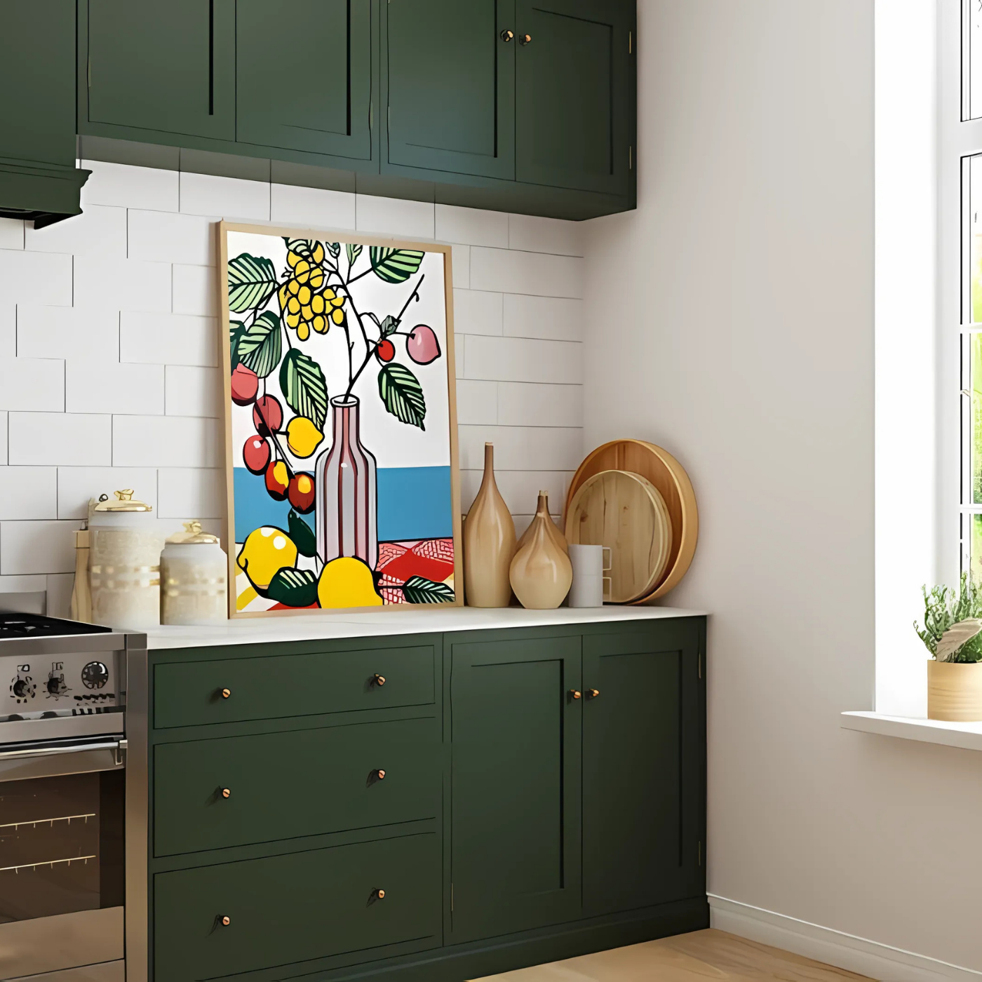 Colorful Fruit & Striped Vase Art Print(Printable+Physical)
