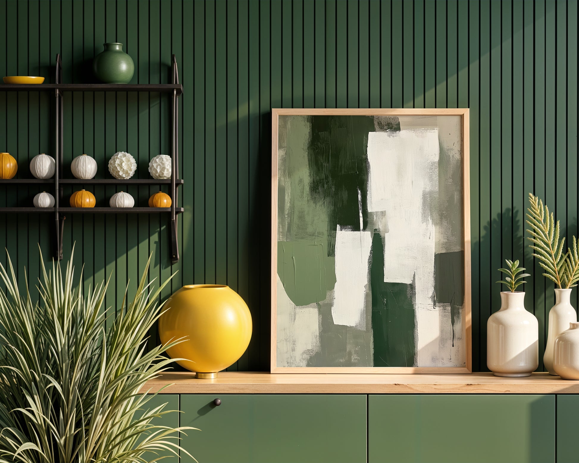 Green Minimalist Abstract Painting and White Minimalist Abstract Wall ArtPrintable+Physical)