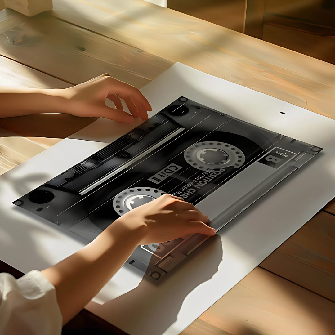 Black And White Retro Cassette Digital Print(Printable+Physical)