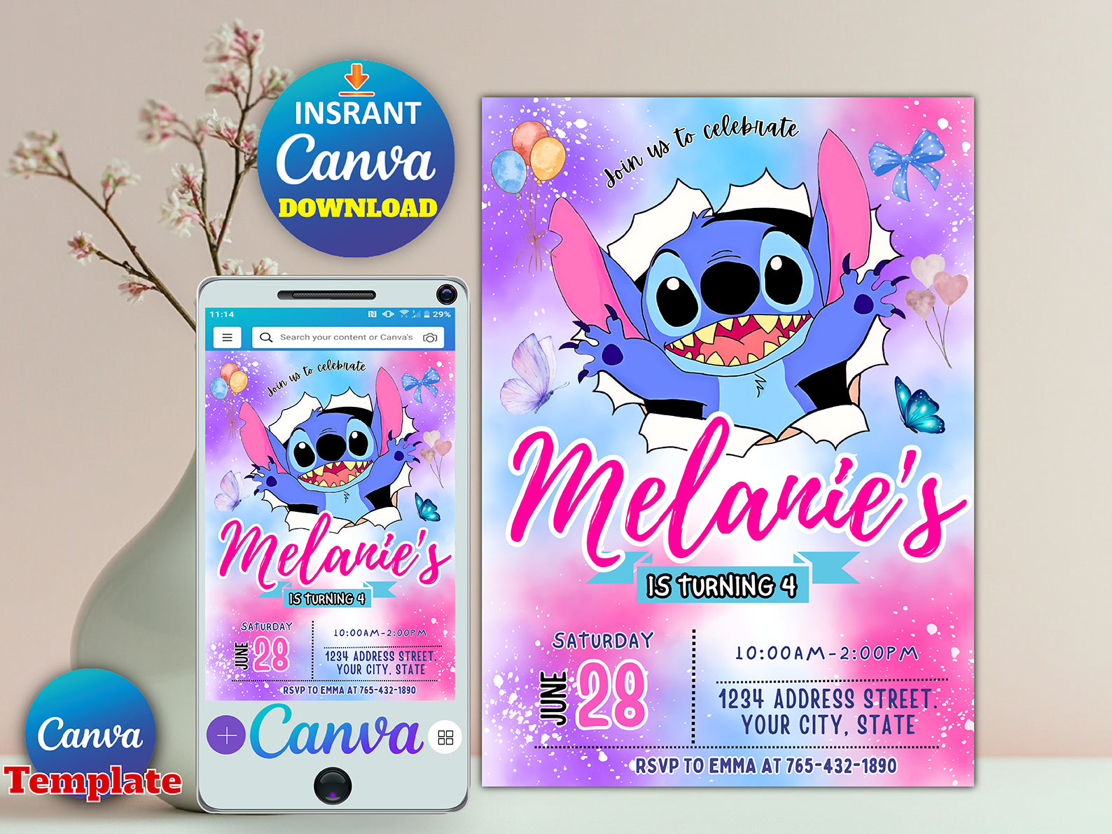 Stitch Birthday Party Invitation Template (Printable)