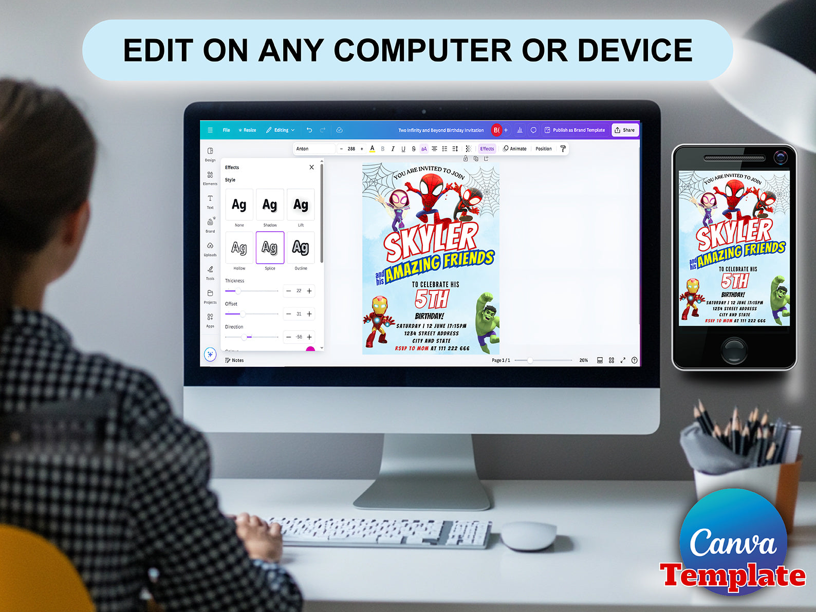 Watercolor Spidey and his Amazing Friends Birthday Party Invitation(Printable)