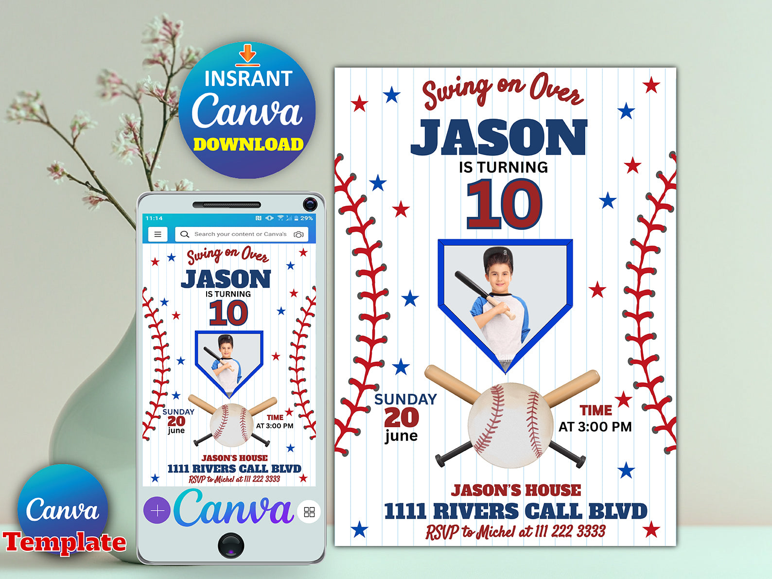 Editable Baseball Birthday Invitation with Photo